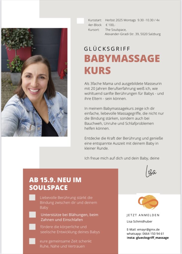 Als 3fache Mama und ausgebildete Masseurin mit 20 Jahren Berufserfahrung weiß ich, wie wohltuend sanfte Berührungen für Babys – und ihre Eltern – sein können.