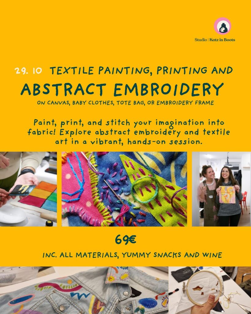 Textile Painting & Abstract Embroidery Workshop on 29.10 at Studio Katz in Boots in Salzburg! 🧵🎨