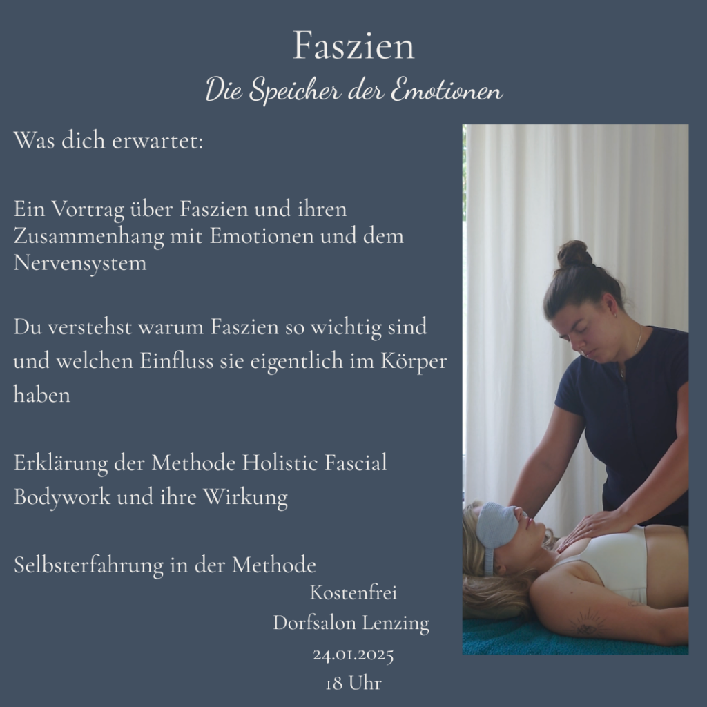 Erfahre, wie Faszien unseren ganzen Körper und unsere Gefühlswelt beeinflussen und wie unsere Vergangenheit unseren Körper formt. Anschließend gehen wir noch in die Selbsterfahrung.