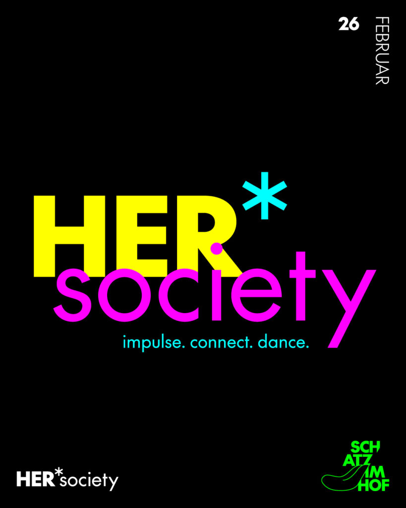 HER Society ist eine monatliche Veranstaltungsreihe für Frauen – eine bewusste Wortspiel-Anlehnung an High Society: Statt um Status geht es um die Sichtbarkeit von frauenrelevante Themen: gesellschaftlich, persönlich, beruflich oder körperlich. Jeder Termin lädt zum Zuhören, Austauschen und Feiern ein. Ein sicherer Raum wird geschaffen, in dem Frauen sich austauschen, stärken und verbinden können.