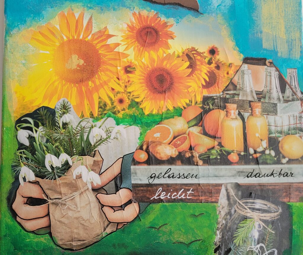 – Kreatives Arbeiten mit Collage auf Leinwand