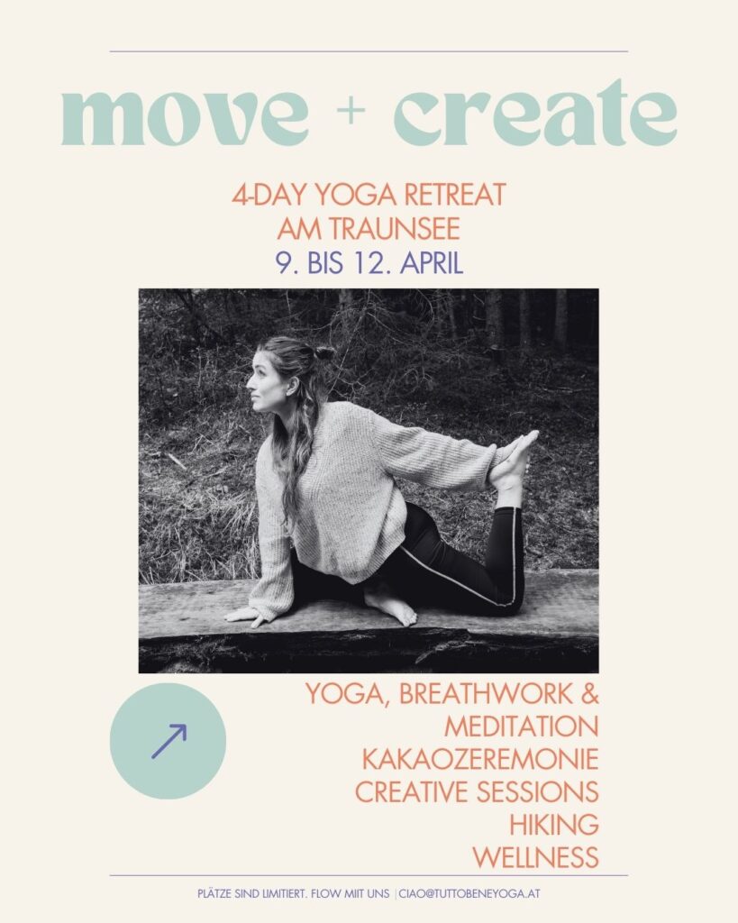 4 Tage im Zeichen von Bewegung, Natur und Gestalten.  Wenn du Lust hast, bei diesen Tagen am Wasser dabei zu sein, du deinem Körper ein angenehmes Maß an achtsamer Bewegung und Atmen schenken möchtest, und dir endlich wieder Zeit für Zeichnen, Drucken und Schreiben in richtig schöner Atmosphäre nehmen willst, freue ich mich, wenn du dabei bist.  Programm: Yoga (auf der Matte und in der Natur), Creative Sessions, Me-Time im Spa, Wanderung, Kakaozeremonie