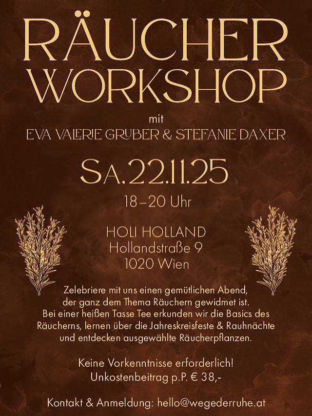 Zelebriere mit uns einen gemütlichen Abend, der sich ganz dem Thema Räuchern widmet. Keine Vorkenntnisse erforderlich!