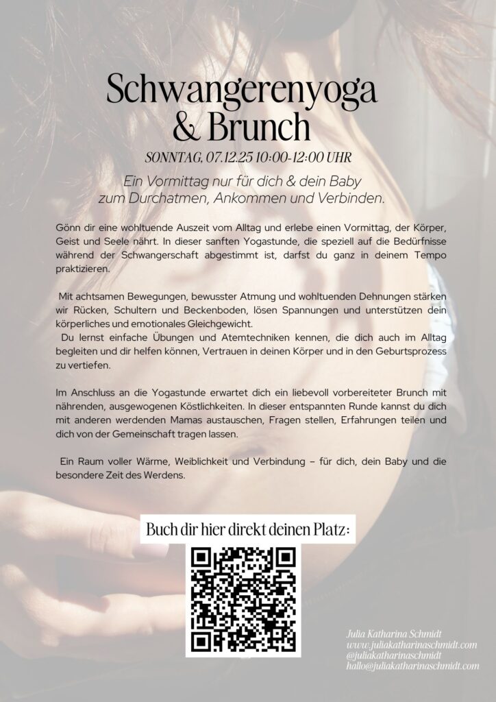 Gönn dir eine wohltuende Auszeit vom Alltag und erlebe einen Vormittag, der Körper, Geist und Seele nährt. In dieser sanften Yogastunde, die speziell auf die Bedürfnisse während der Schwangerschaft abgestimmt ist, darfst du ganz in deinem Tempo praktizieren.