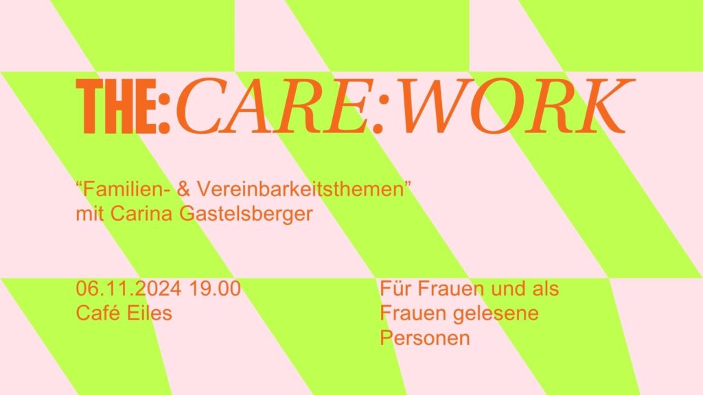 Nach einer langen Pause gibt es endlich wieder ein CARE : WORK Treffen, ein kleiner, feiner Stammtisch, wo wir uns aus feministischer Perspektive zu Themen wie Elternschaft, Vereinbarkeit, Familie, Mental Load, geschlechtssensibler Erziehung und vielem mehr austauschen wollen.