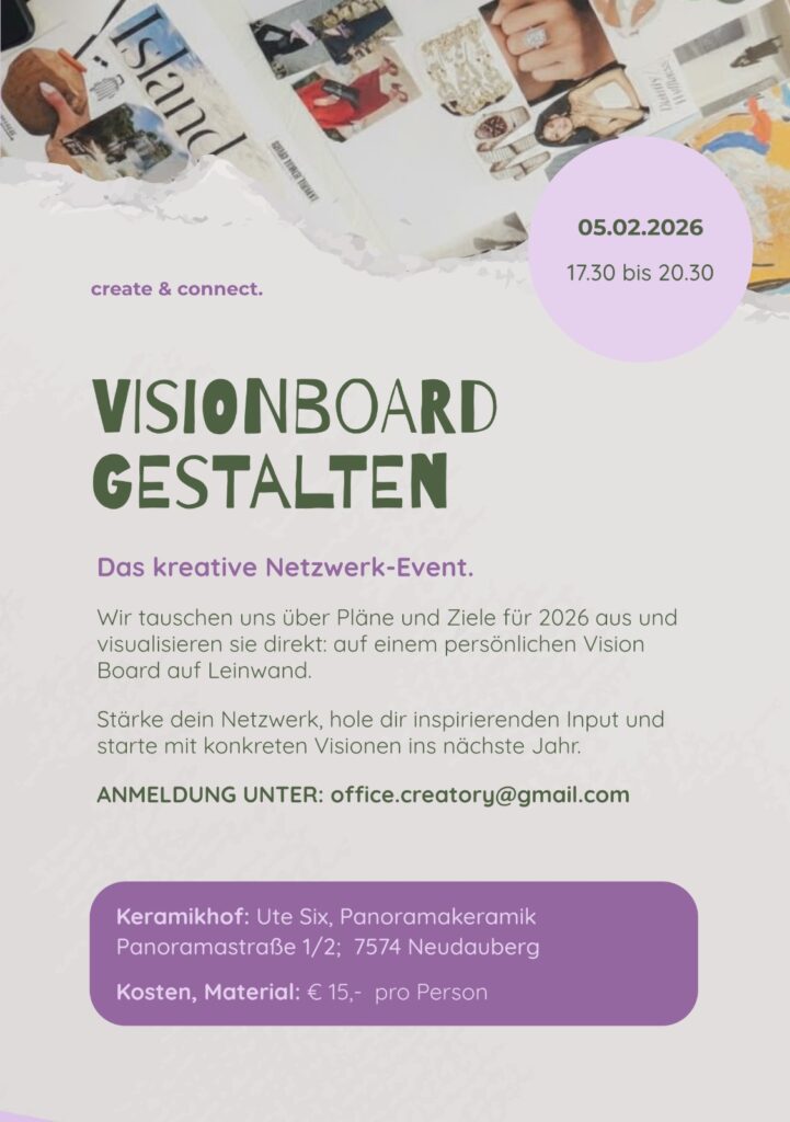 Create & connect soll keine steife Business-Veranstaltung sein, bei der wir uns gegenseitig mit Jobtiteln beeindrucken. Es geht um gemeinsames Wachsen. Während wir unsere Visionboards für 2026 gestalten, entstehen die besten Gespräche ganz von alleine. Wir lernen uns über Visionen kennen, statt über stumpfen Smalltalk✨☺️