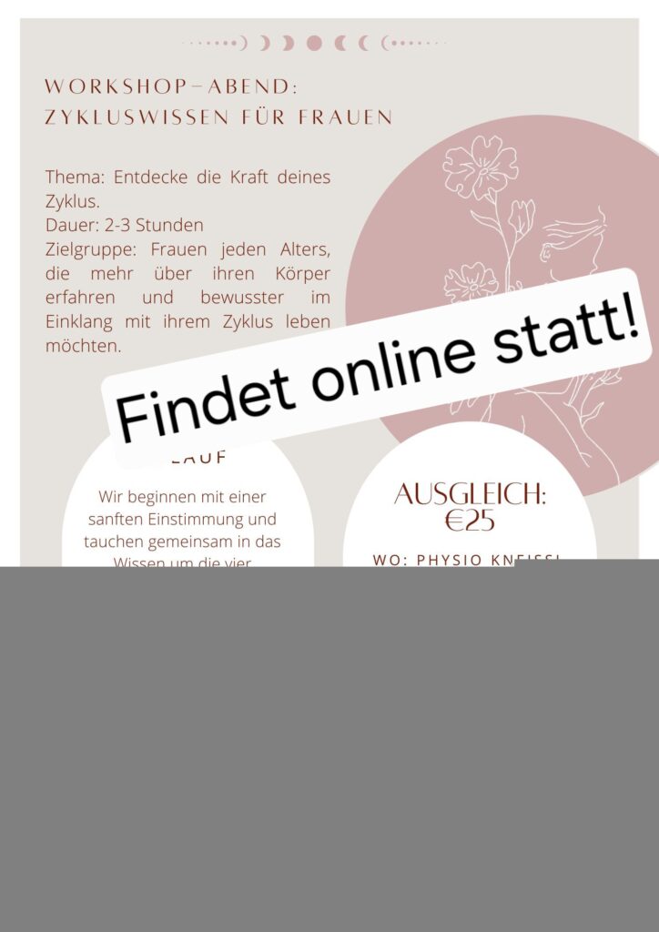 Ein Abend in einem geschützten Raum für Frauen jeden Alters, die mehr über ihren Körper und ihren Zyklus erfahren möchten. Kombiniert wird die Vermittlung von Wissen mit Körperarbeit!