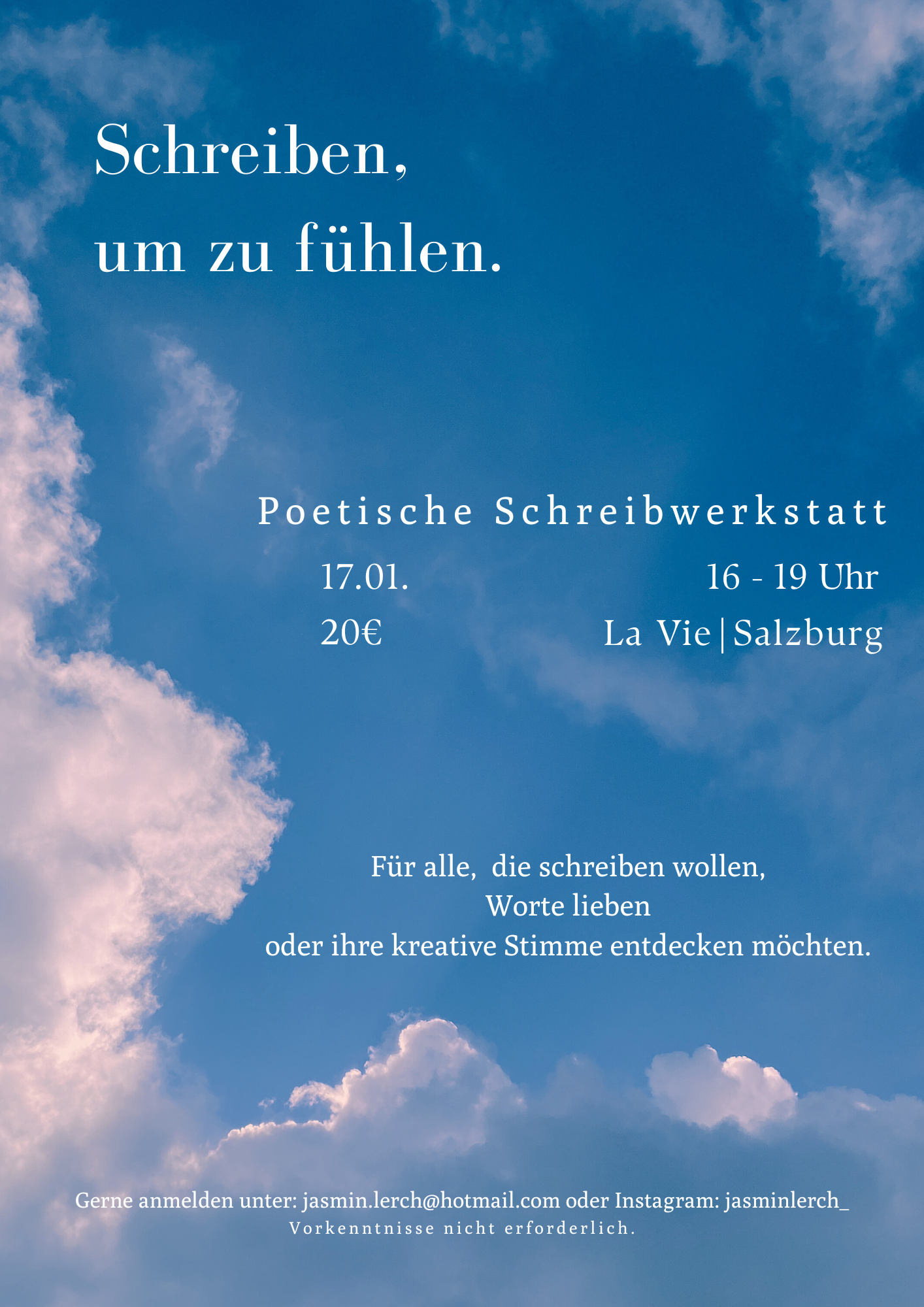 La Vie Coworking Wolf-Dietrich-Straße 9, Salzburg, Salzburg, Austria +1 weitereDieser Workshop ist ein Raum für Menschen, die schreiben wollen – nicht perfekt, nicht nach Regeln, nicht „richtig“.Sondern ehrlich. Sichtbar. Echt. Hier darfst du Worte finden, die vielleicht schon lange […]