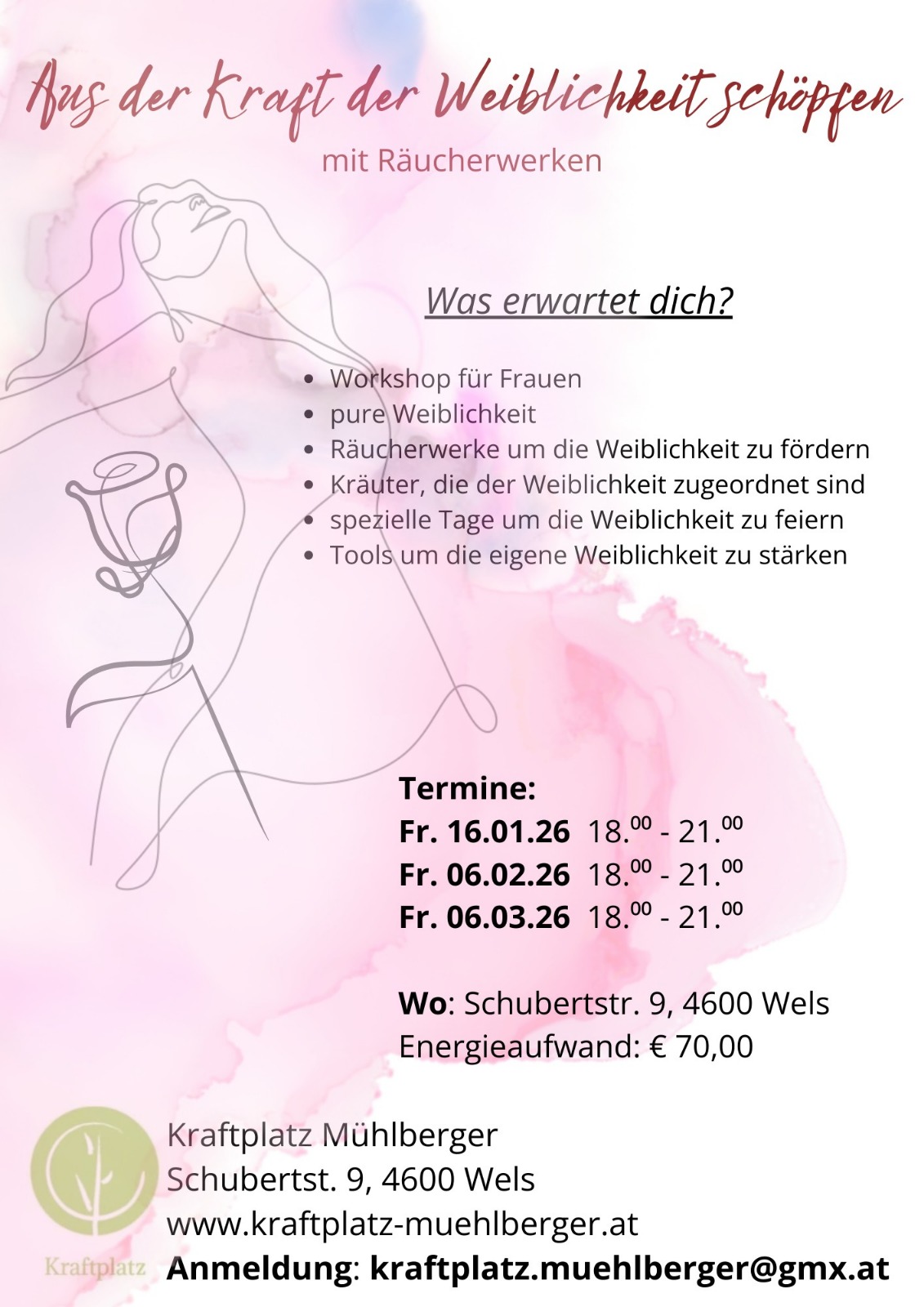Heilsame Gerüche und Räucherzauber - 16. Jänner 26 Entdecke, wie ätherische Öle, Harze und Kräuter deine Gesundheit, Hautpflege und Hausapotheke bereichern. Für dich wenn: 🌿 du wissen möchtest, wie Düfte unsere Stimmung, Energie und Gesundheit beeinflussen 🌿 du natürliche Wege suchst, um dein Wohlbefinden, deine Hautpflege oder Hausapotheke zu bereichern 🌿 du dich für ätherische Öle, Harze, […]
