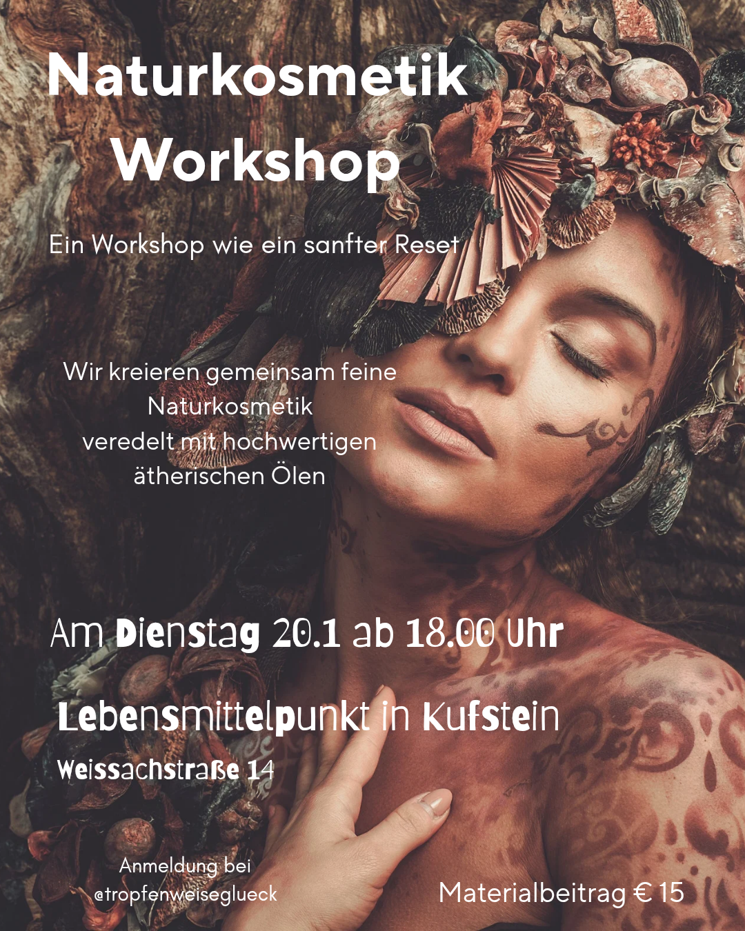 Ein Abend in entspannter Atmosphäre. Sei kreativ und kreiere mit uns deine Naturkosmetik mit hochwertigen ätherischen Ölen. Deine Naturkosmetik, sowie die Rezepte kannst du selbstverständlich mit nach Hause nehmen. Materialkosten: € 15,00 Anmeldung per Email: info@tropfenweiseglueck.at oder Über Instagram: @tropfenweiseglueck